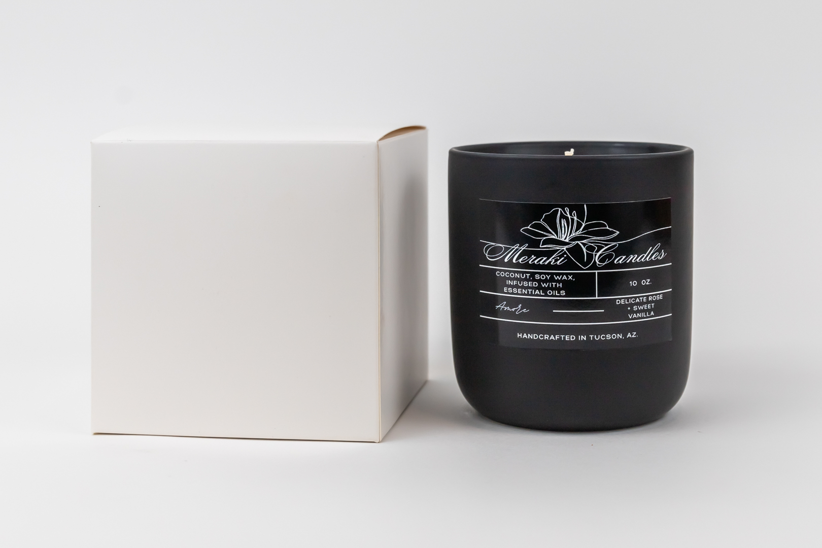 This candle blend is made with all natural plant-based coconut soy wax, virgin coconut oil, blended with pure + plant-based essential oils, and cotton core wicks.
